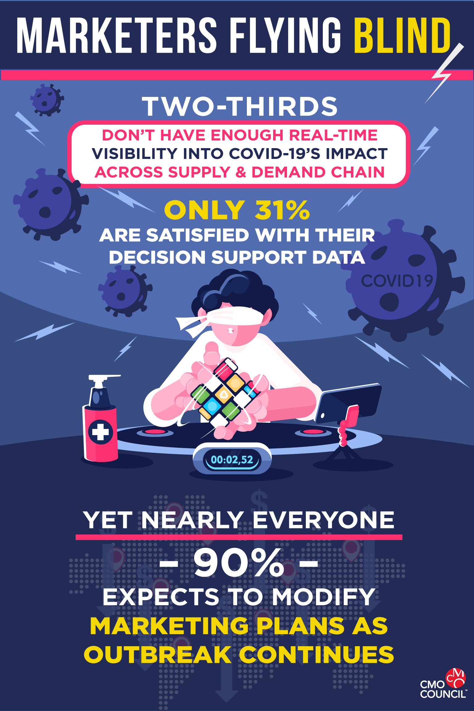 Amid the COVID-19 chaos, CMOs are largely operating in the dark, forced to make critical decisions without essential data insights to support them. Only one third of 150 global marketers report having real-time visibility and insight into the impact of the pandemic on both demand and supply channels.